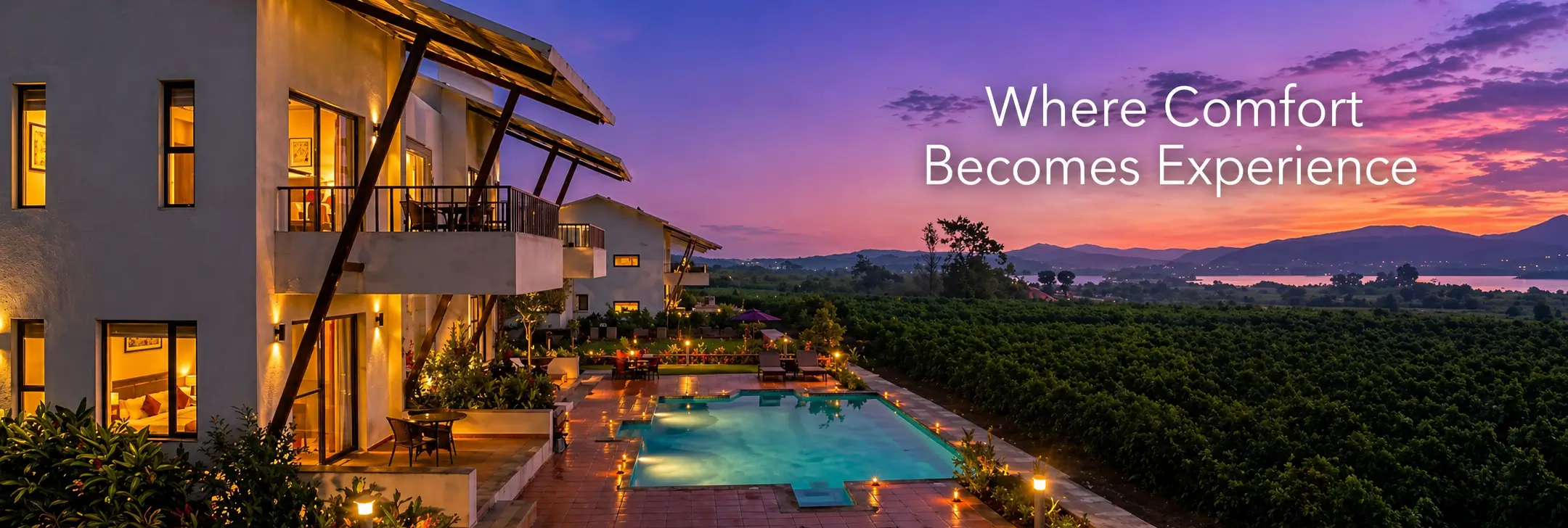 Located in Nashik’s renowned wine region, Soma Vine Village is easily accessible yet feels worlds away.